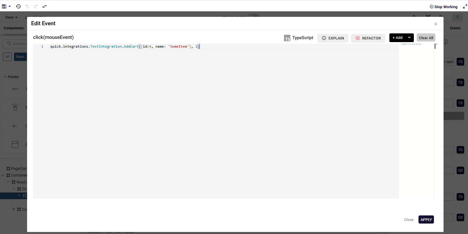 This allows you to quickly reference and invoke your integration-specific events directly from supported UI components.