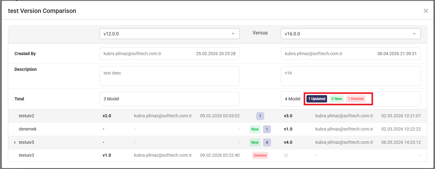 If you share a module as Version Module, Version Settings pop-up will appear in Actions menu. From here you can change the version of an imported module. You can also change the version of a module by clicking version number of a imported module in Import Module dialog.