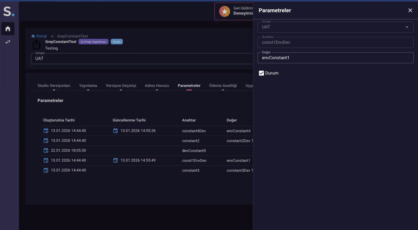 The secure storage of secret values using the constant structure has been added in MiniApps. This allows sensitive information such as API keys, tokens, and similar data to be managed centrally, improving security and configuration management. See More