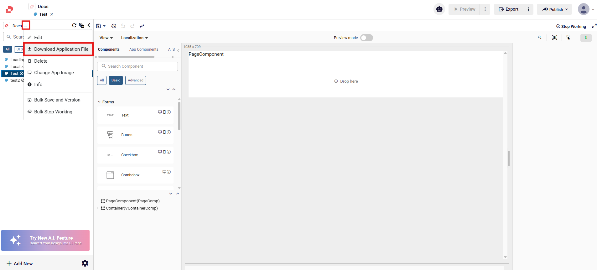 The Download and Upload Application feature allows you to duplicate applications by downloading and re-uploading them.The application, including its entire model–folder–module structure and the references between models, is downloaded and uploaded together.