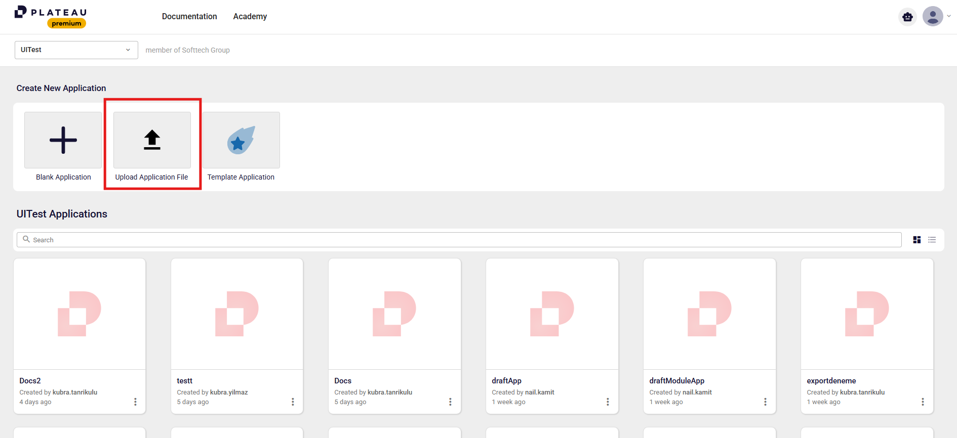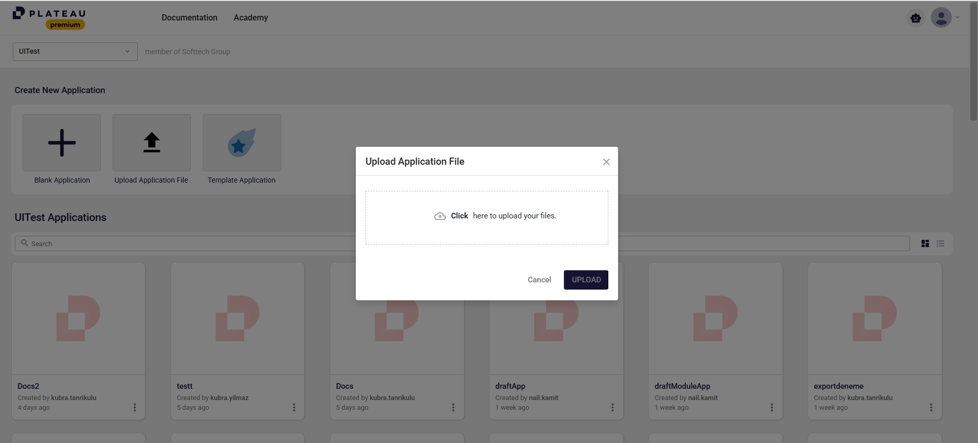 - Select your application file and click the Upload button.