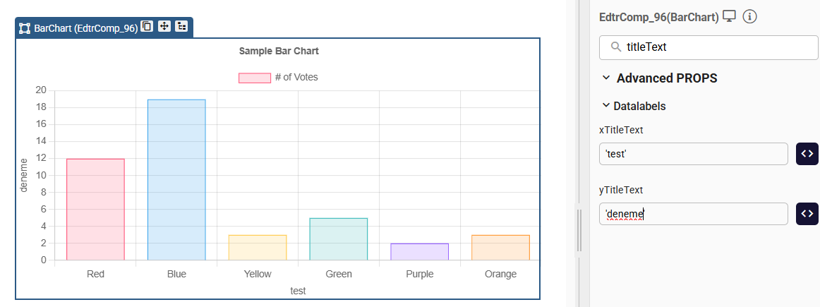 | xTitleFontSize | Font size for the X-axis title (in px). | string | 12 |